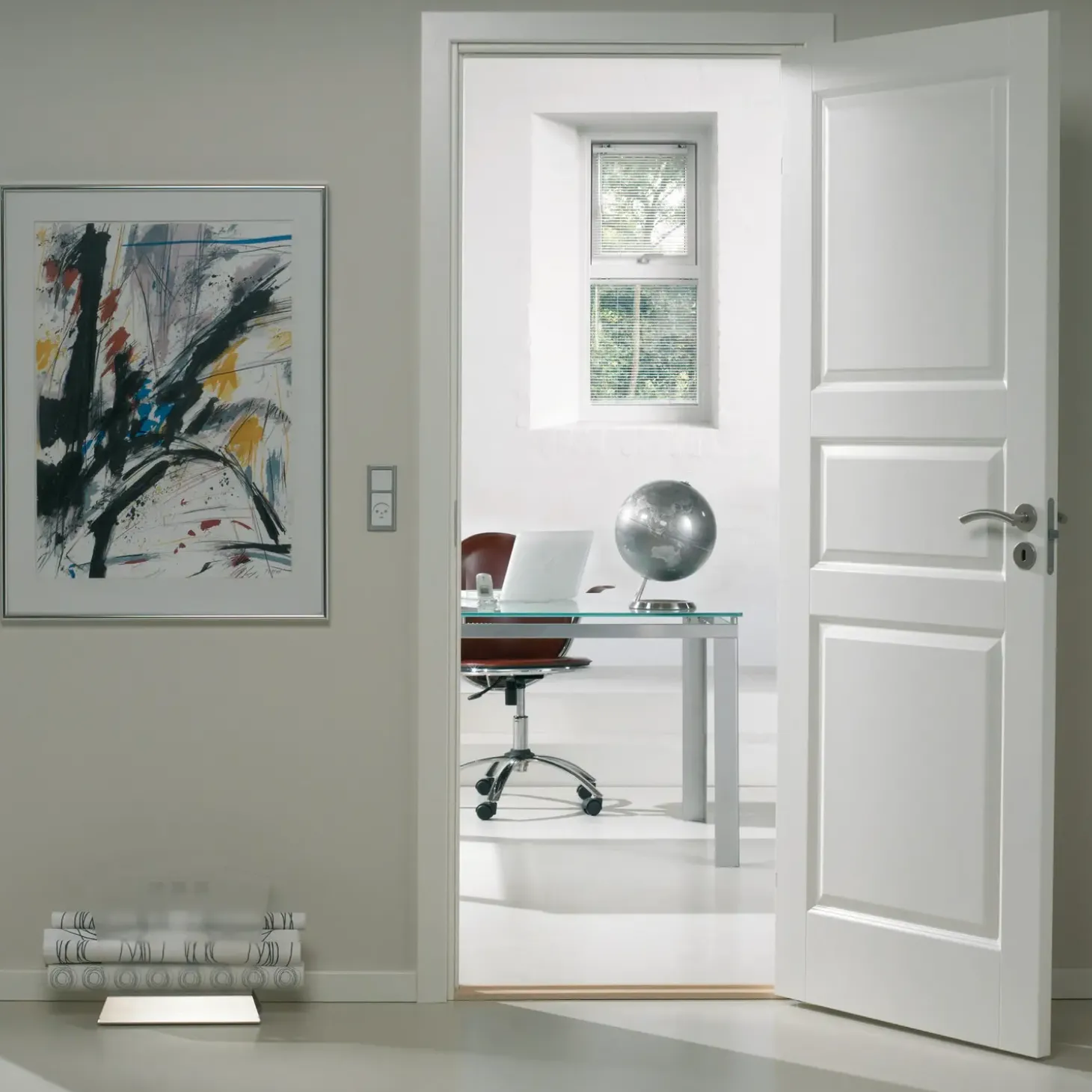 Dørene er designet i ét stykke uden samlinger, og døren er bygget op omkring en massiv lydisolerende kerne, der giver en lydreducerende effekt.