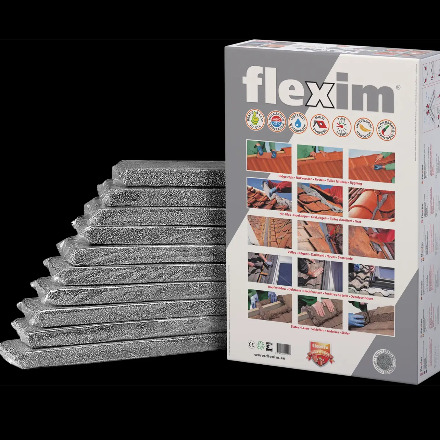 Flexim rygningskit kan med fordel anvendes til tætnings- og fastholdelsesopgaver. Flexim tætner og fastholder rygninger, grater og tagsten. Desuden kan Flexim rygningskit også anvendes til tætning omkring tagvinduer, skorstene og skotrender. Rygningskittet er fremstillet af vegetabilske olier med tilslag af polystyrenkugler. Leveres udskåret i brugsklare stykker. De udskårne stykker leveres som separate enheder i lufttæt plastindpakning, emballeret i solide og stabelbare papkartoner.