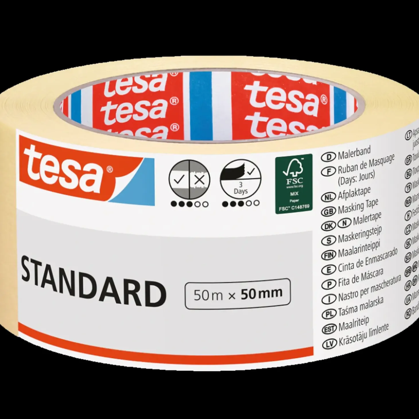 tesa® Malertape Standard er en multifunktionel malertape, der altid bør være i din værktøjskasse, når du skal male dine vægge eller langt om længe vil renovere dit hjem. Den fremstilles af papir, så den nemt kan bortskaffes, og er tilgængelig i forskellige bredder for at sikre effektiv afdækning i næsten enhver situation.
