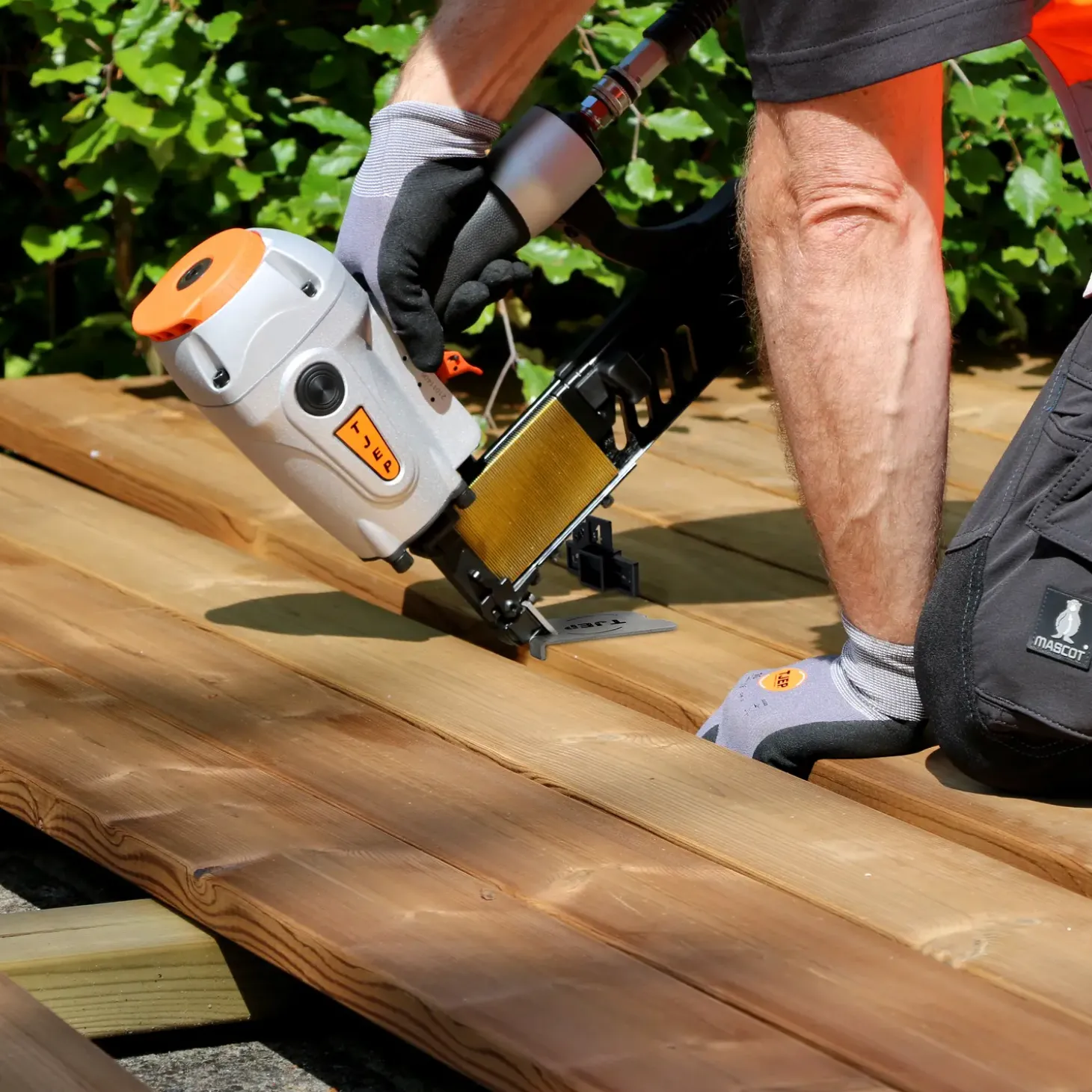 Montering med TJEP QUICK-FAST® er hurtig og nem, og efterlader en glat overflade uden synlige brud på overfladen. Den er velegnet og anbefales til alle bløde træsorter (nåletræ) – f.eks. trykimprægneret træ, brun-imprægneret træ, fyr, douglas, termotræ/varmebehandlet træ, sibirisk lærk og gran