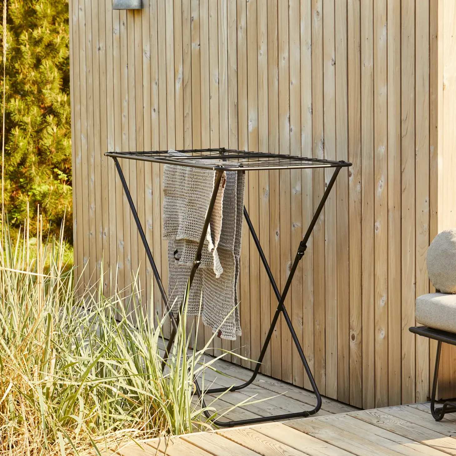 Klassisk sammenklappeligt tørrestativ med “vinger” med total 18 m tørreplads.