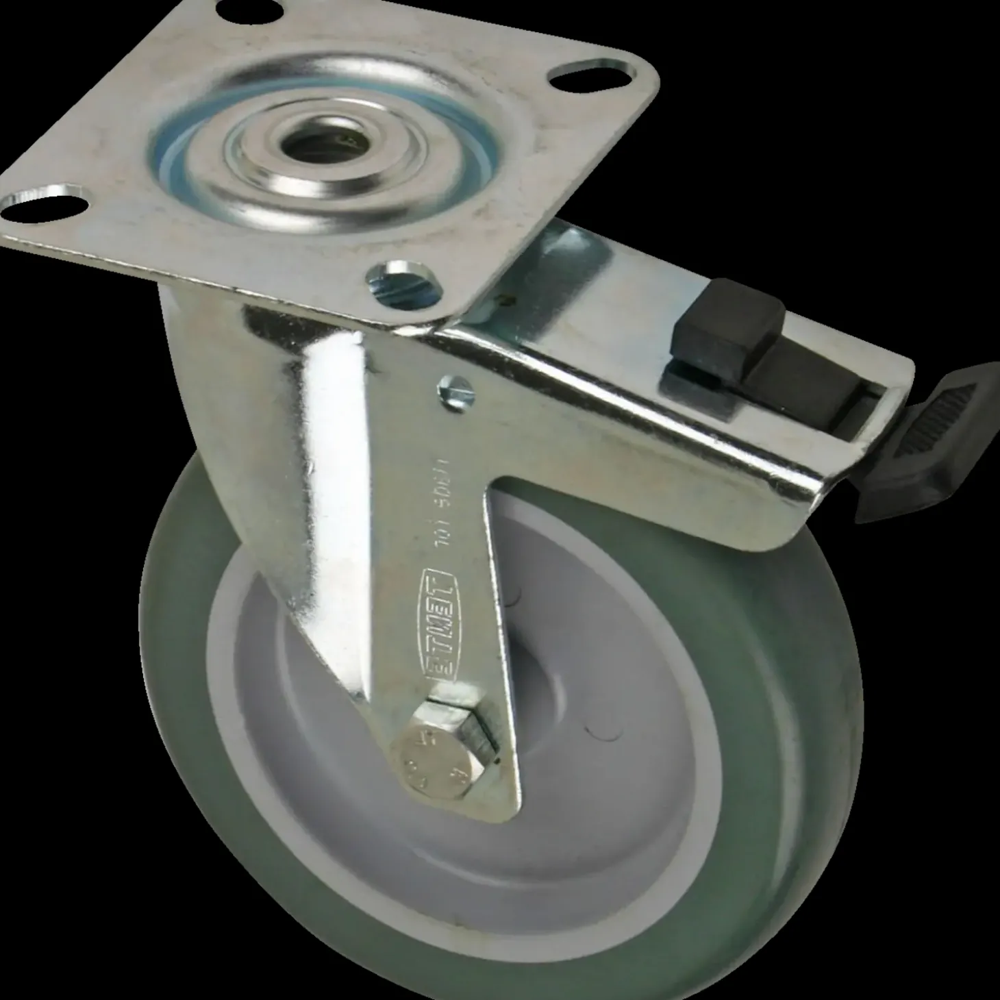 Transport hjul med plade og bremse der kan holde til en totalvægt på 70 kg