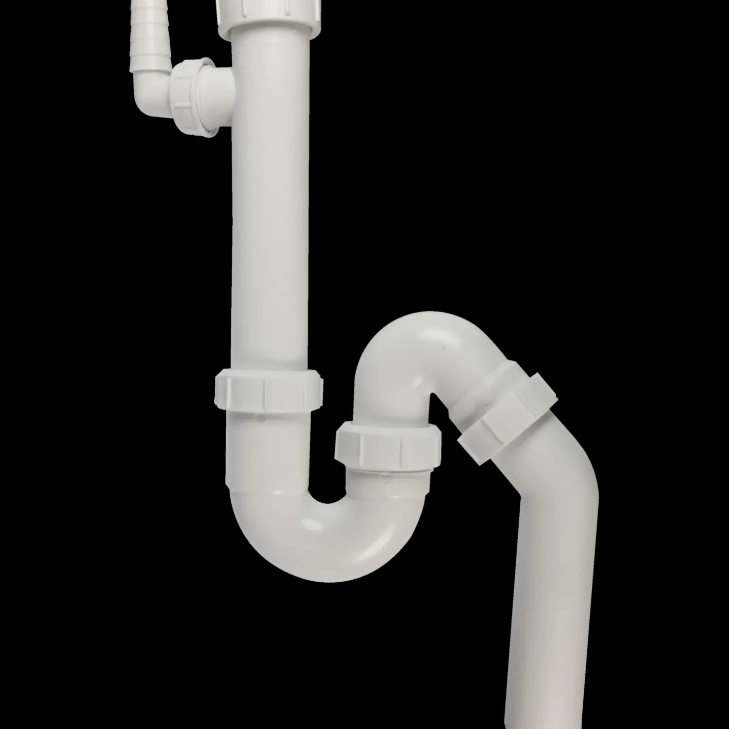 Selvrensende vandlås til bryggers og køkken 1 1/2″ x 40 mm. Inkl. tilslutningsstuds for vaske- og opvaskemaskineafløb.