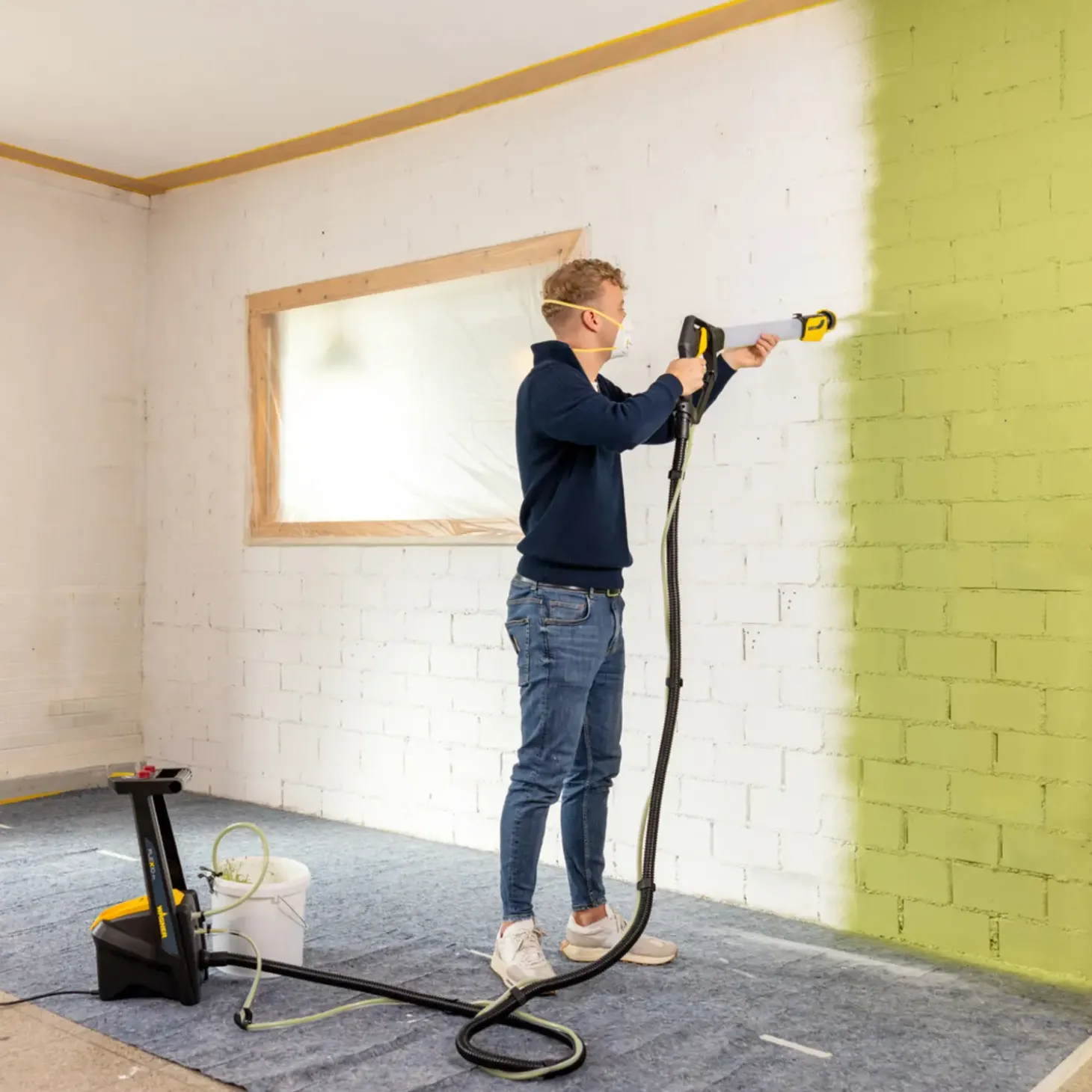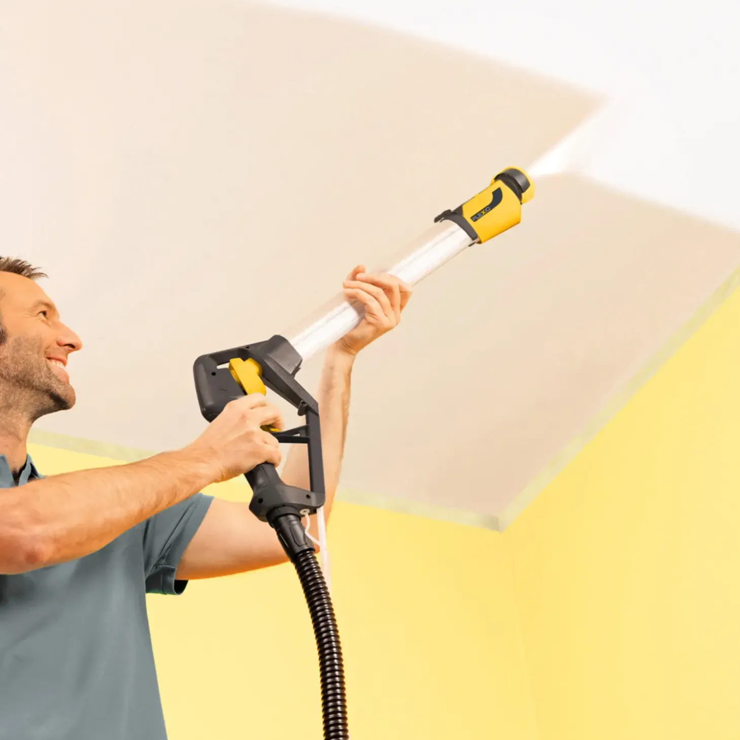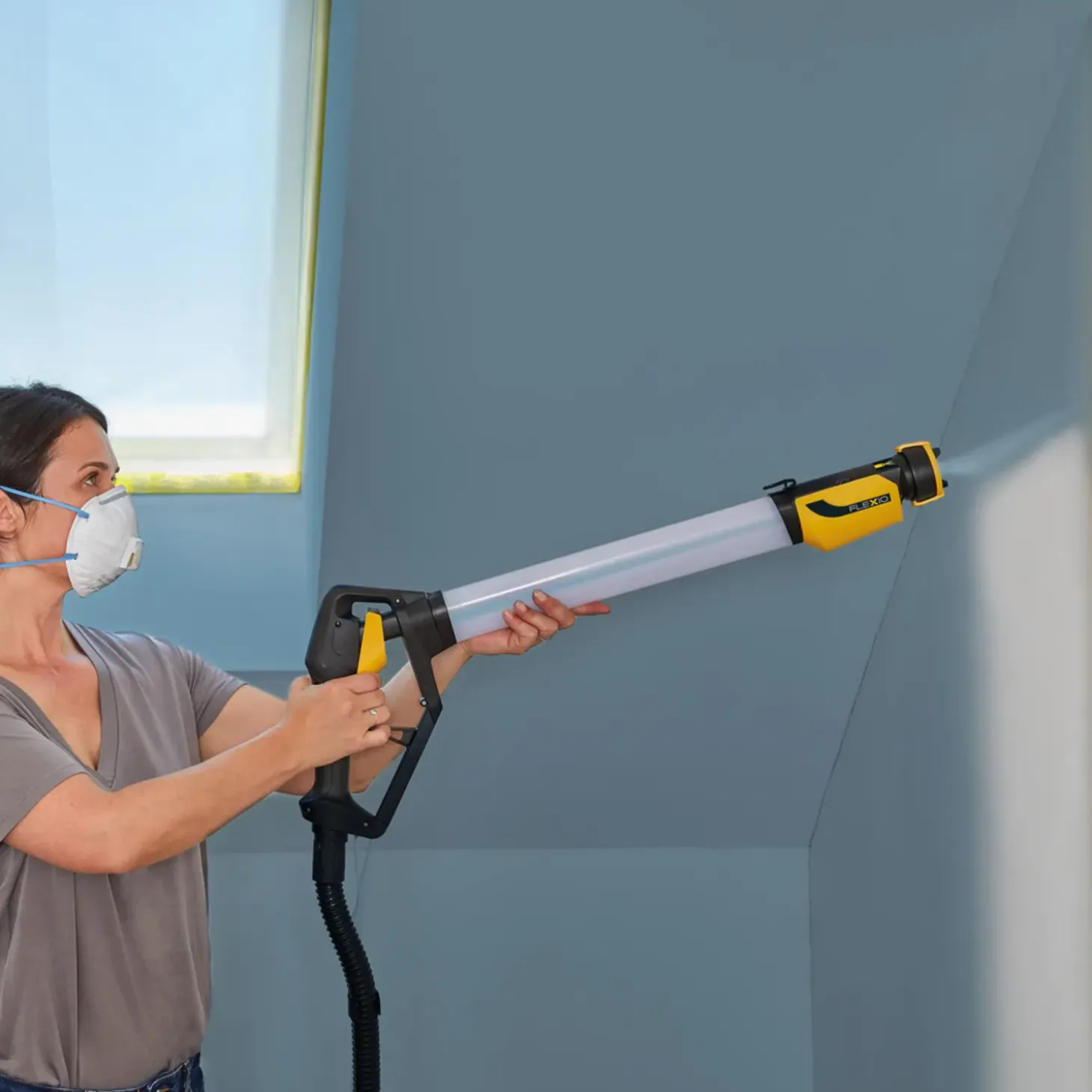 Wagner Black Range W 975 Flexio gør arbejdet endnu lettere for dig. Med den 70 cm lange sprøjtelanse kan du uden at anstrenge dig påføre maling på lofter, vægge. Malingen suges direkte op fra spanden, føres via en slange gennem lansen og sprøjtes på væggen i et perfekt dækkende lag. På den måde er det endnu lettere at sprøjte vægge og lofter. Det samme gælder rengøringen – takket være selvrensningsfunktionen renser systemet sig selv på få minutter. Med den medfølgende adapter og ekstra sprøjtepistol kan udstyret også anvendes til lakker og træbeskyttelse.