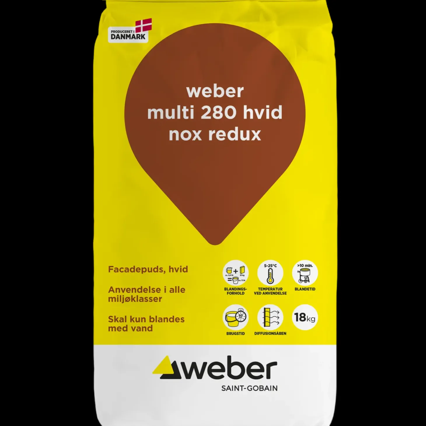 weber multi 280 NOx Redux er en specialmørtel baseret på cement, ovntørret sand og tilsætningsstoffer, som forbedrer vedhæftning og bearbejdelighed, samt nedbryder Nox i luften. weber multi 280 NOx Redux er diffusionsåben.