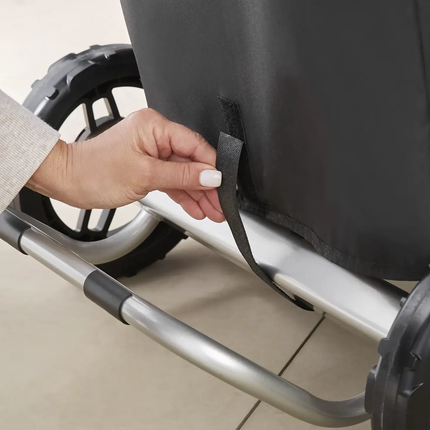 Uanset om der er silende regn, frost, sne eller brændende sol – det lette, men holdbare Premium-grillbetræk er nemt at trække af og sætte på din grill, når du tilbringer et par dage på campingpladsen. Betrækket er udstyret med stropper, så det ikke blæser af og for eksempel flyver ind i naboens have, og det er fremstillet af et vandafvisende polyestermateriale, der bevarer en ren og glat overflade.