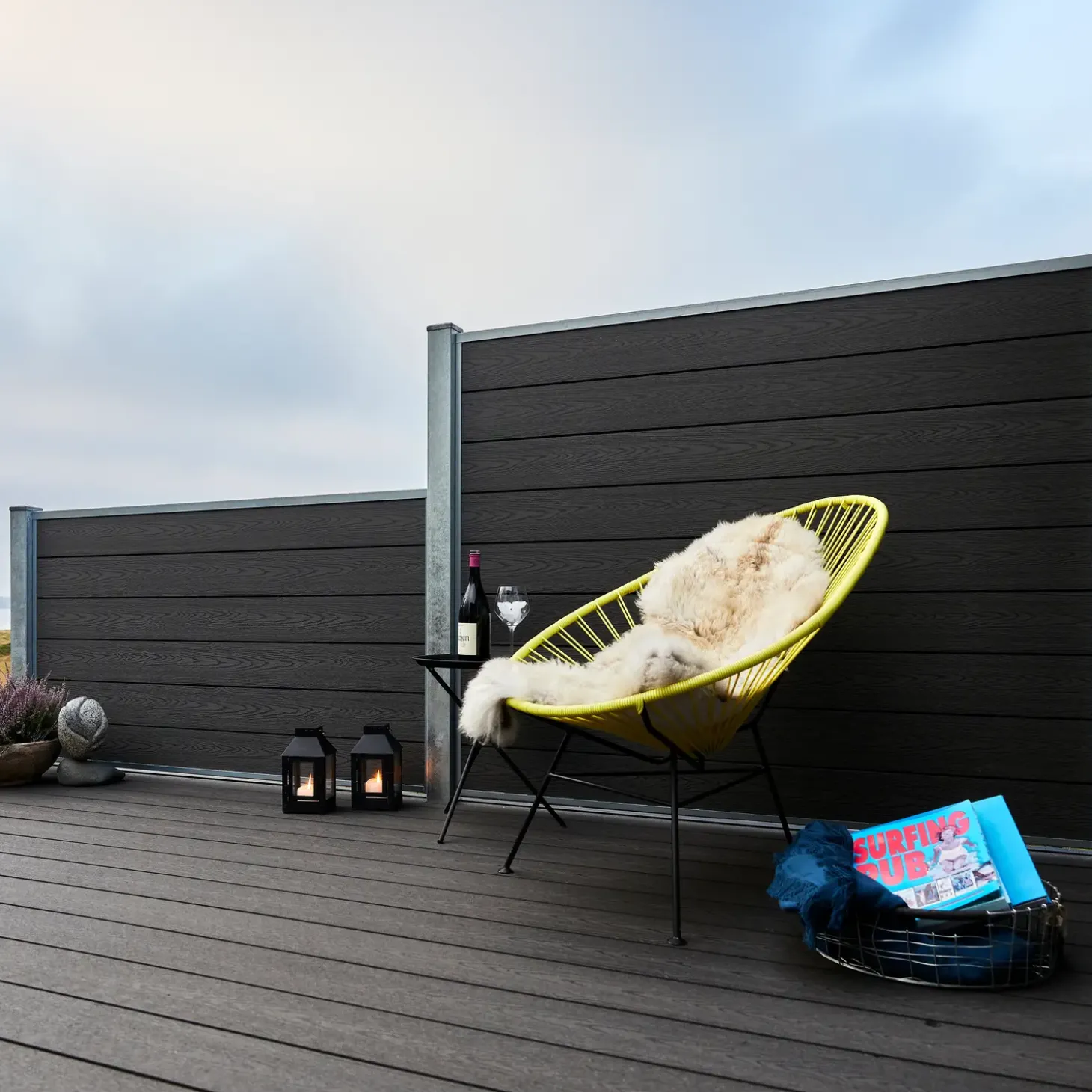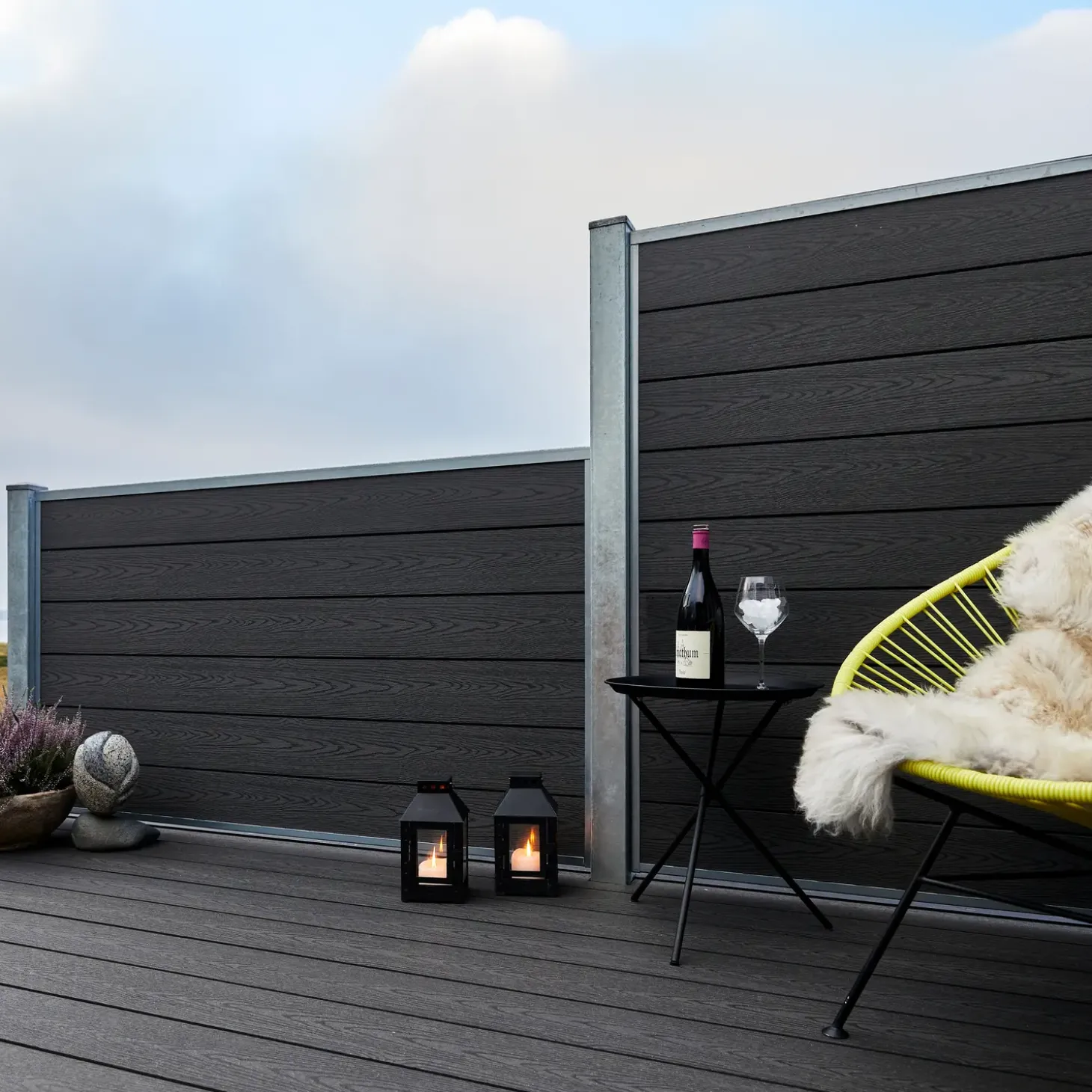 Designet med den moderne V-profil sikrer ikke kun et flot udseende men giver også øget holdbarhed, da WPC-materialet (Wood Plastic Composite) er kendt for sin høje modstandsdygtighed overfor det danske vejrs skiften. De skjulte, galvaniserede stolper tilføjer en elegant finish uden at kompromittere styrken, hvilket giver dig tryghed i din have.
