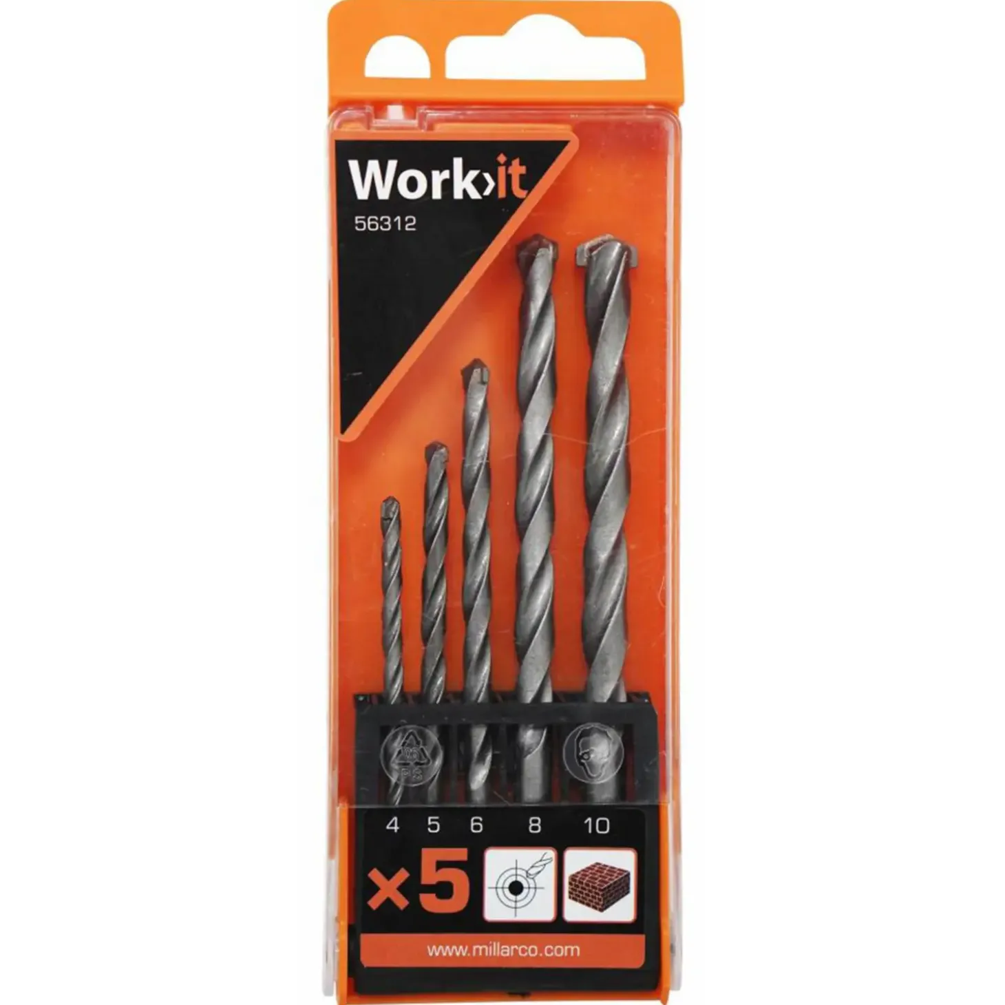 Work>it murbor i karbonstål der anvendes til murværk. Murborsættet findes i størrelserne Ø4-5-6-8-10 mm